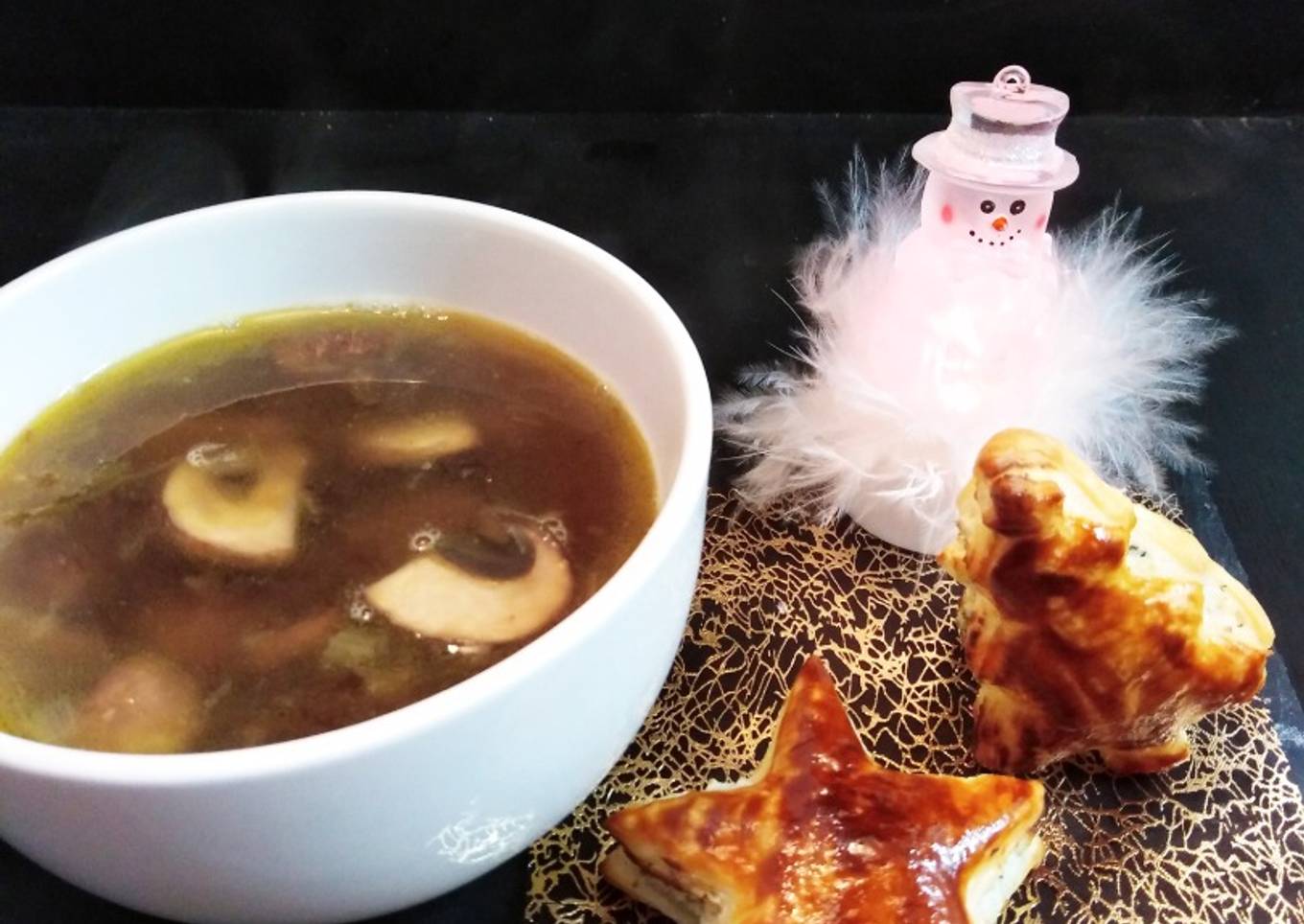 CONSOMME AUX CHAMPIGNONS, FEUILLETÉS AUX HERBES