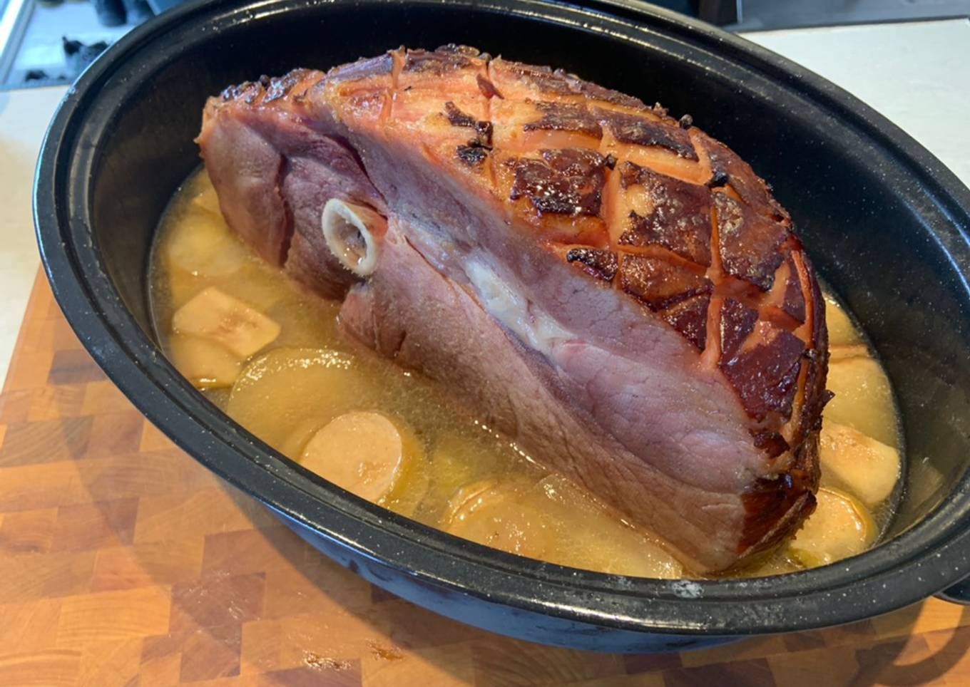 - Servir le jambon avec la sauce et accompagnements au choix.