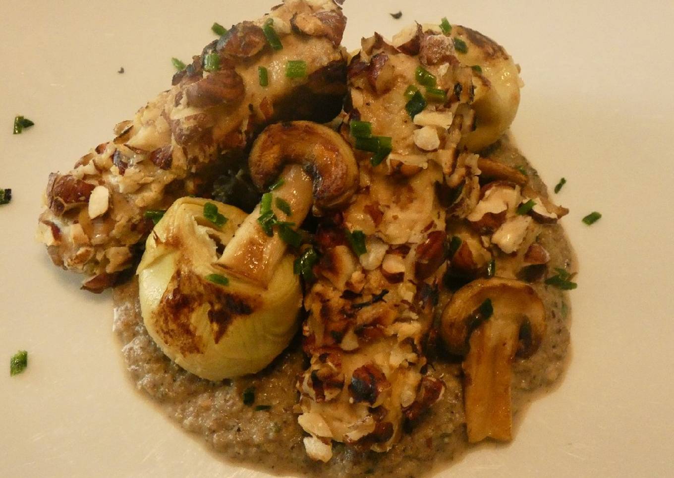 Instructions to make to make Tofu en croûte de noisette sur crème de champignons