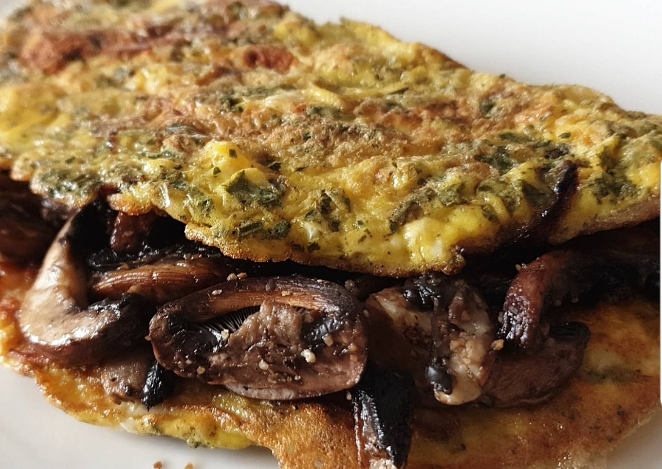 Omelette aux fines herbes garnie de champignons frais