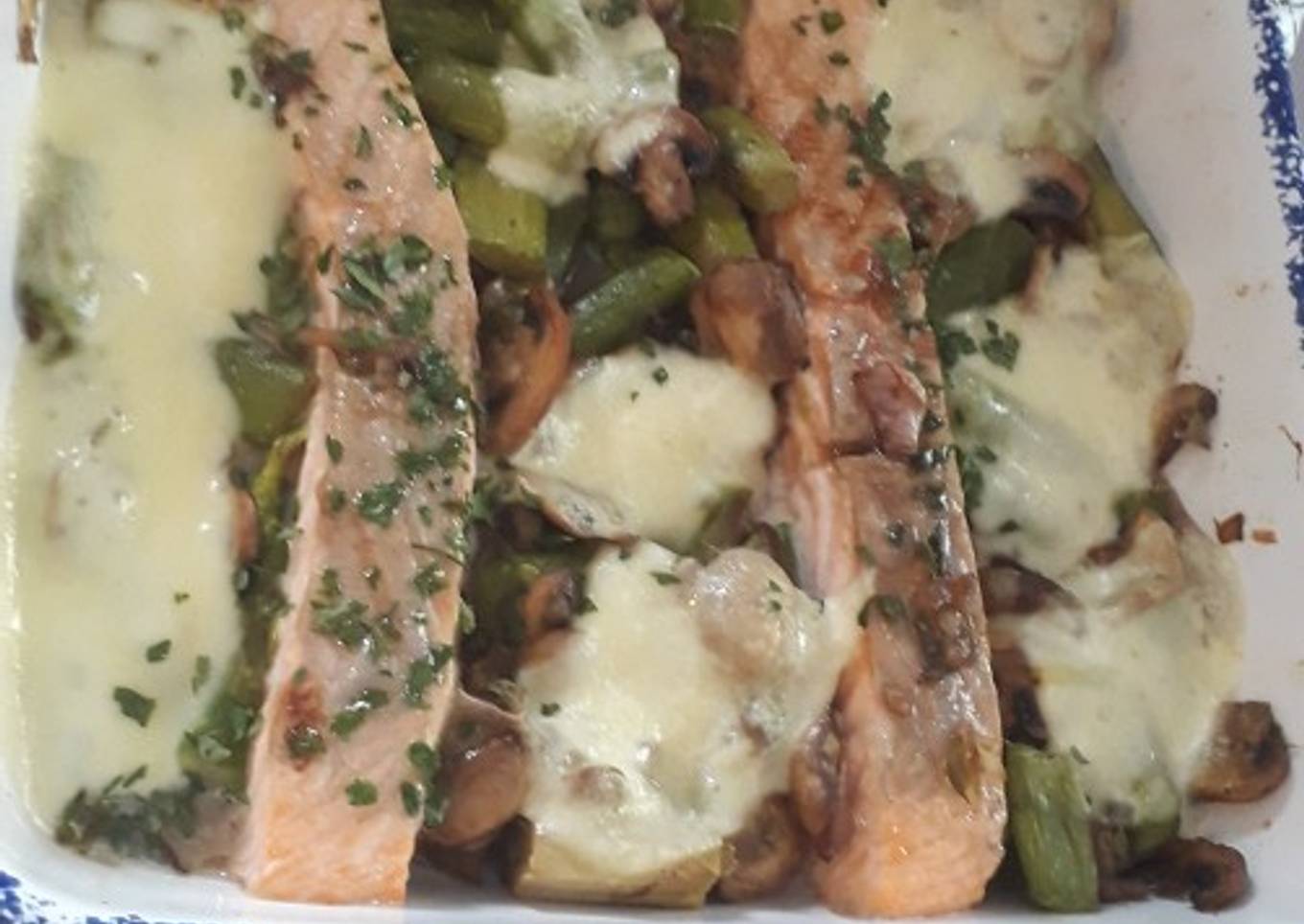 Hello everybody, it is Brad, welcome to our recipe page. Today, we're going to make a special dish, Saumon et son gratin champignon, asperges. It is one of my favorites food recipes. This time, I am going to make it a little bit tasty. This is gonna smell and look delicious.