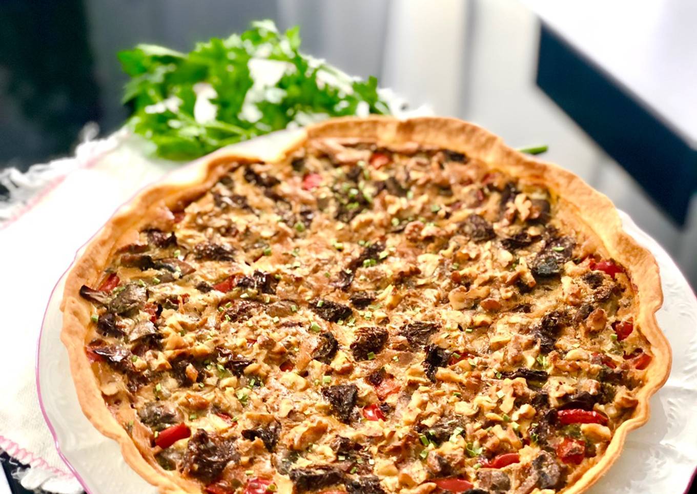 Tarte aux champignons et cerneaux de noix